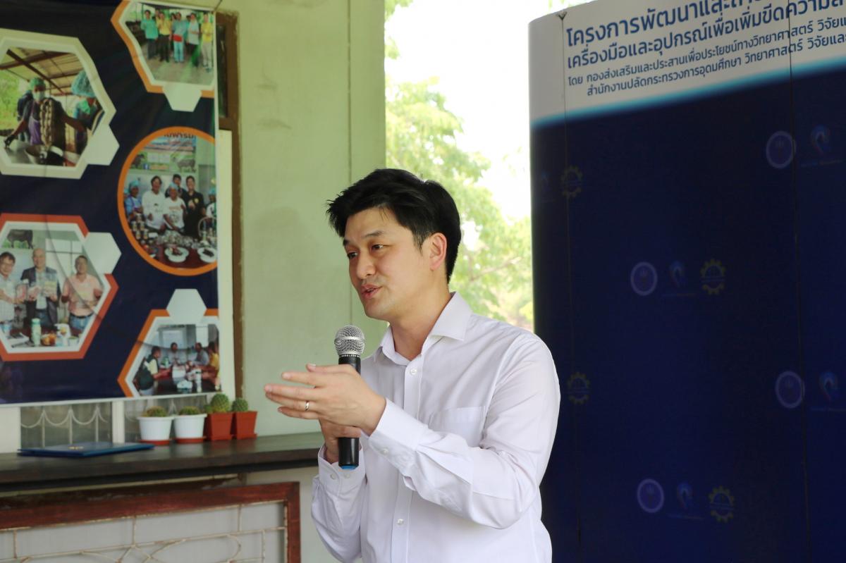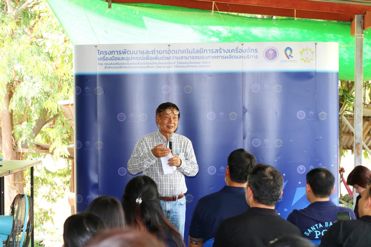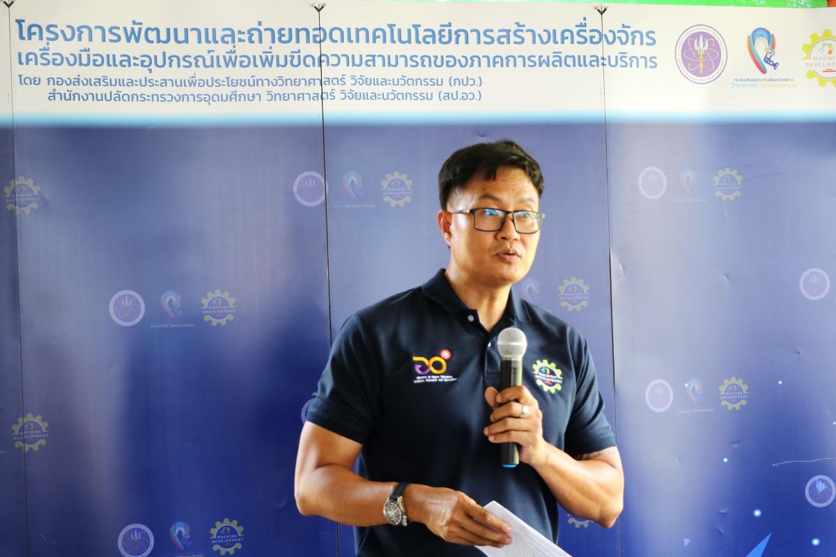 ดร.ชาญวิทย์ ตรีเดช ผู้อำนวยการกลุ่มส่งเสริมธุรกิจเทคโนโลยีและนวัตกรรม กปว. สป.อว. กล่าวเปิดกิจกรรมแถลงความสำเร็จ “ผลงานเครื่องผสมหญ้าอาหารสัตว์แบบแกนเดี่ยวแนวตั้ง ซึ่งเป็นความร่วมมือเชิงบูรณาการระหว่าง สป.อว. กับ MTEC ภายใต้โครงการสร้างเครื่องจักรต้นแบบด้วยกระบวนการวิศวกรรมเพื่อการสร้างสรรค์คุณค่า โดยมีวัตถุประสงค์ ในการสนับสนุนการพัฒนาสร้างเครื่องจักร เครื่องมือและอุปกรณ์ที่เหมาะสมกับกระบวนการผลิตภายในประเทศตามความต้องการของภาคการผลิต เพื่อลดการนำเข้าเทคโนโลยีจากต่างประเทศ และเพิ่มขีดความสามารถในการแข่งขันให้แก่ภาคเอกชนไทย โดยอาศัยกระบวนการวิศวกรรมย้อนกลับ (Reverse Engineering) ที่มุ่งเน้นการพัฒนาในด้านการออกแบบใหม่ให้เหมาะสมกับบริบทของประเทศไทย การพัฒนาเครื่องผสมหญ้าอาหารสัตว์แบบแกนนอนคู่ หรือเครื่องผสมอาหาร TMRที่แถลงข่าวในวันนี้ ถือเป็นกิจกรรมหนึ่งที่สอดรับกับยุทธศาสตร์ของกระทรวง ซึ่ง อว. ตระหนักดีว่าเครื่องนี้จะทำให้สร้างภาพลักษณ์ของการเลี้ยงโคเนื้อคุณภาพ และนำไปสู่การสร้างรายได้เพิ่มให้แก่เกษตรกรผู้เลี้ยงโค ดังนั้น สป.อว. จะพัฒนาต่อยอดเทคโนโลยีนี้ต่อไป เพื่อให้เหมาะสมกับการใช้งานมากยิ่งขึ้น และเกิดการขยายผลสู่เชิงพาณิชย์ต่อไป”